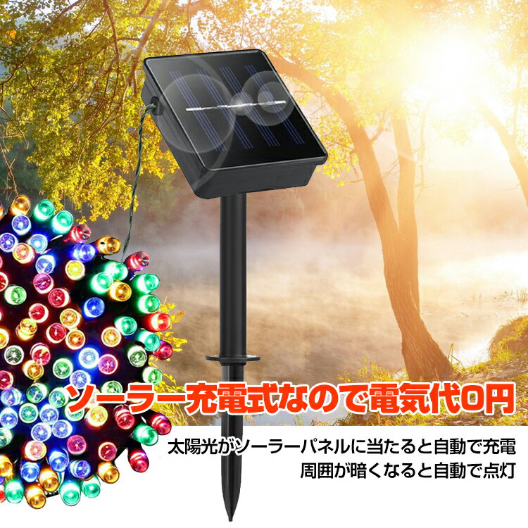 ◆ご自宅でも華やかに飾れるイルミネーションです ◆LED電球の数は300球 ◆イルミネーションの長さは約30m ◆ツリーやフェンスに巻き付けるストレートタイプです ◆ソーラー充電式なので電気代は0円です ◆雨に濡れても安心な防水仕様です ◆日本語説明書付き 【商品内容】:ソーラーイルミネーション 【カラー】:レインボー/ピンク/ブルー/パープル/ホワイト 【長さ】:(約)30m 【LED】:300球 ◆お急ぎの方など、メール便配送商品を、宅配便発送に変更ご希望の方は商品と別に、下記送料チケットを同時購入してください。