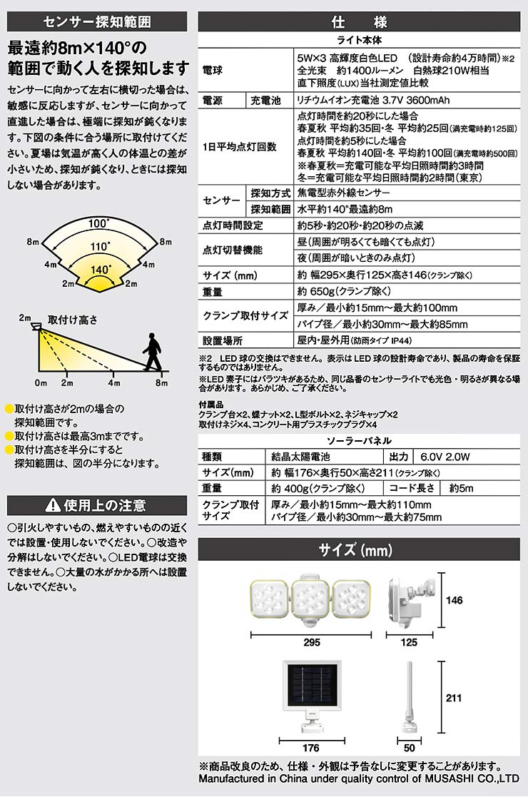 探知方式=集電型赤外線人感センサー。