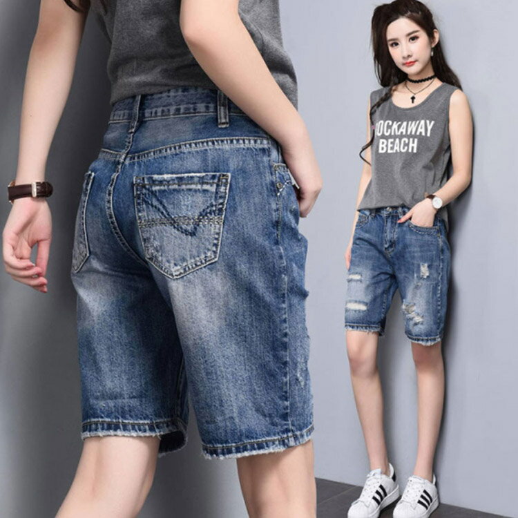 美シルエットで細見せ効果アリ!デニムハーフパンツ デニムパンツ 五分丈 ハーフパンツ デニム ジーンズ ボトムス ダメージ クラッシュ ゆったり ハイウエスト 夏 レディース
