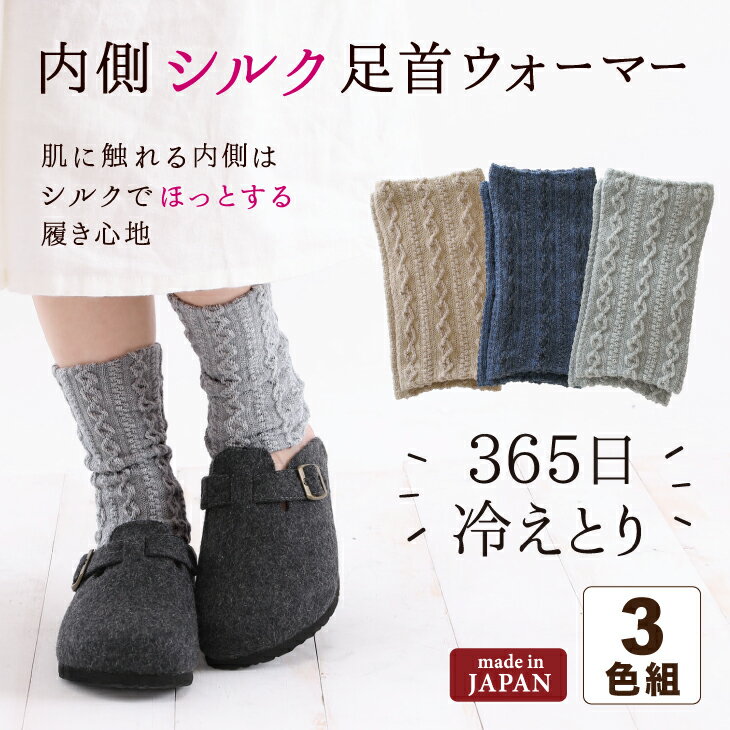内側シルク足首ウォーマー3色組|シルク 絹 内側シルク足首ウォーマー レッグウォーマー 冷え 冷房対策 冷え対策 足首 手首 ポカポカ ぽかぽか 冷えとり 冷え取り 足元 二重編 あったか ショート ゆったり オフィス 温活 3色組 プレゼント